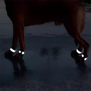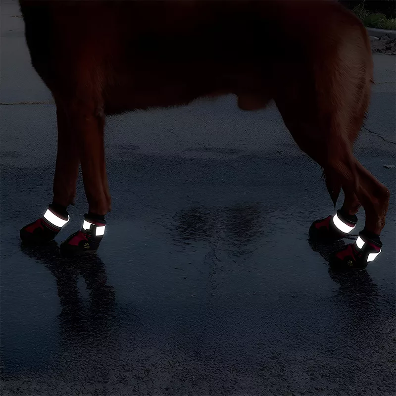 Diese Hundeschuhe sind ideal für abendliche Spaziergänge. Dank der reflektierenden Streifen ist Ihr vierbeiniger Freund auch bei schlechten Lichtverhältnissen gut sichtbar.