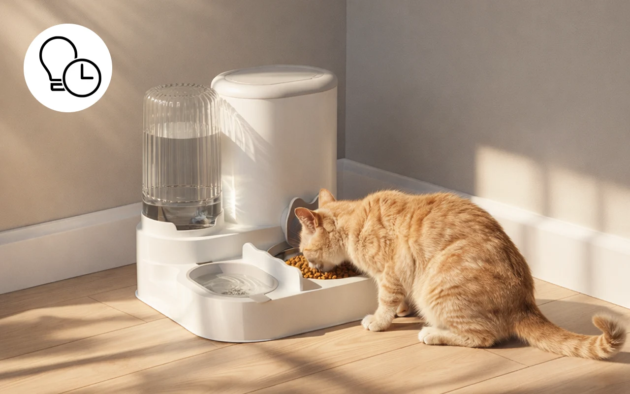 Ich gehe früh zur Arbeit und komme manchmal spät nach Hause. Dieser Futterautomat sorgt dafür, dass mein Kätzchen ihr Futter bekommt und auch Wasser hat, wenn ich beschäftigt bin.