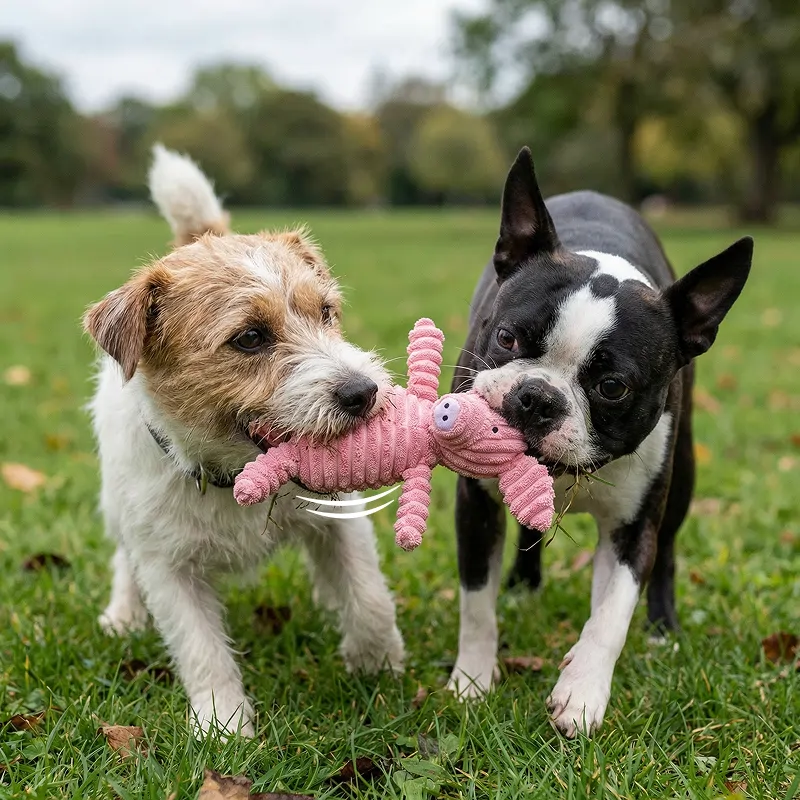Helle Tierformen laden jeden Hund zu spielerischen Momenten ein. Hochwertiger Kord fühlt sich sanft an, hält aber begeisterten Kiefern stand. Quietscher sorgen für Spaß, vertreiben Langeweile und fördern gesundes Kauverhalten. Sichere, ungiftige Materialien bedeuten beruhigende Sicherheit bei jeder Spielsitzung.