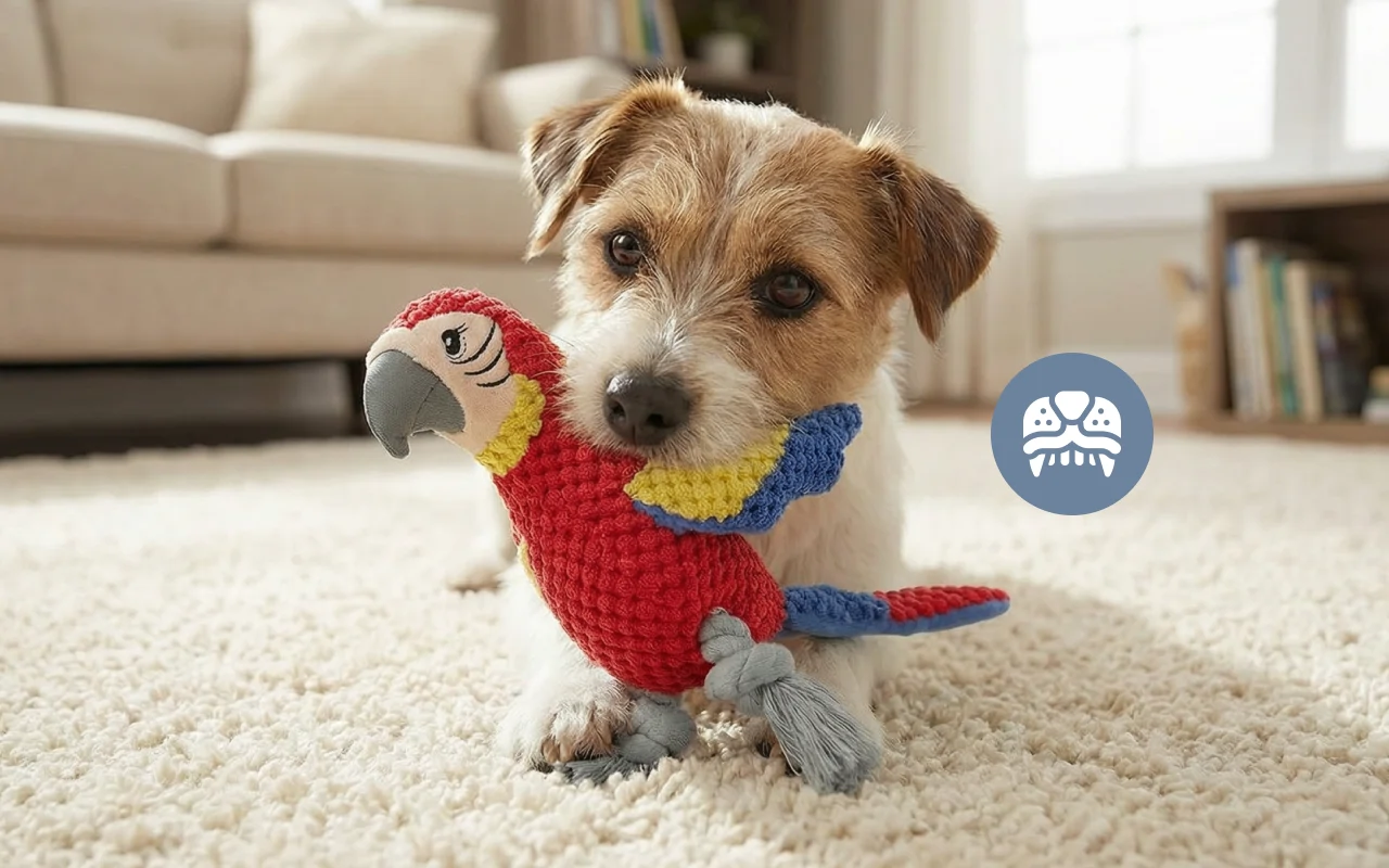 Mein Welpe ist total begeistert, sobald ich ihm den Papagei zuwerfe! Das Quietschen macht ihn richtig aufgeregt und er spielt, bis er bereit für ein Nickerchen ist.