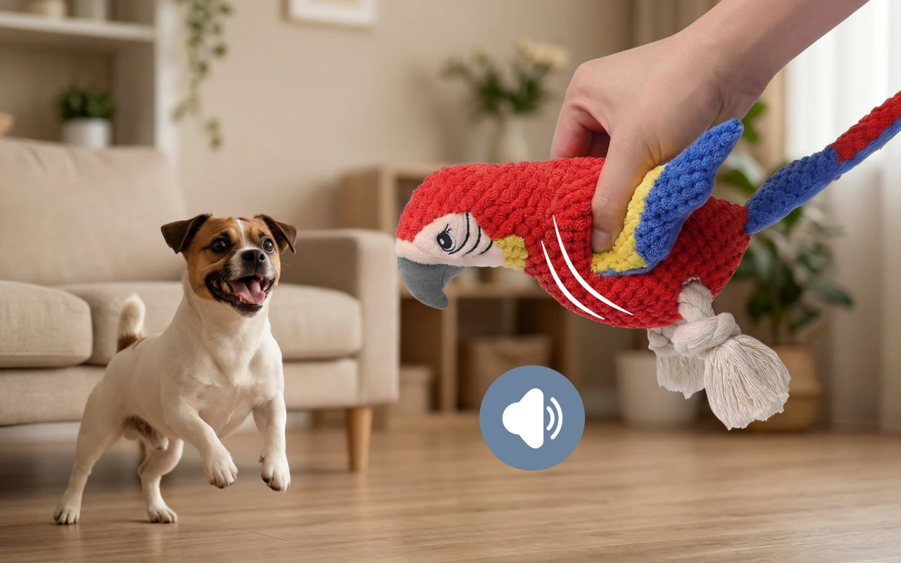 Weiches interaktives Quietsch-Papageienspielzeug für Hunde