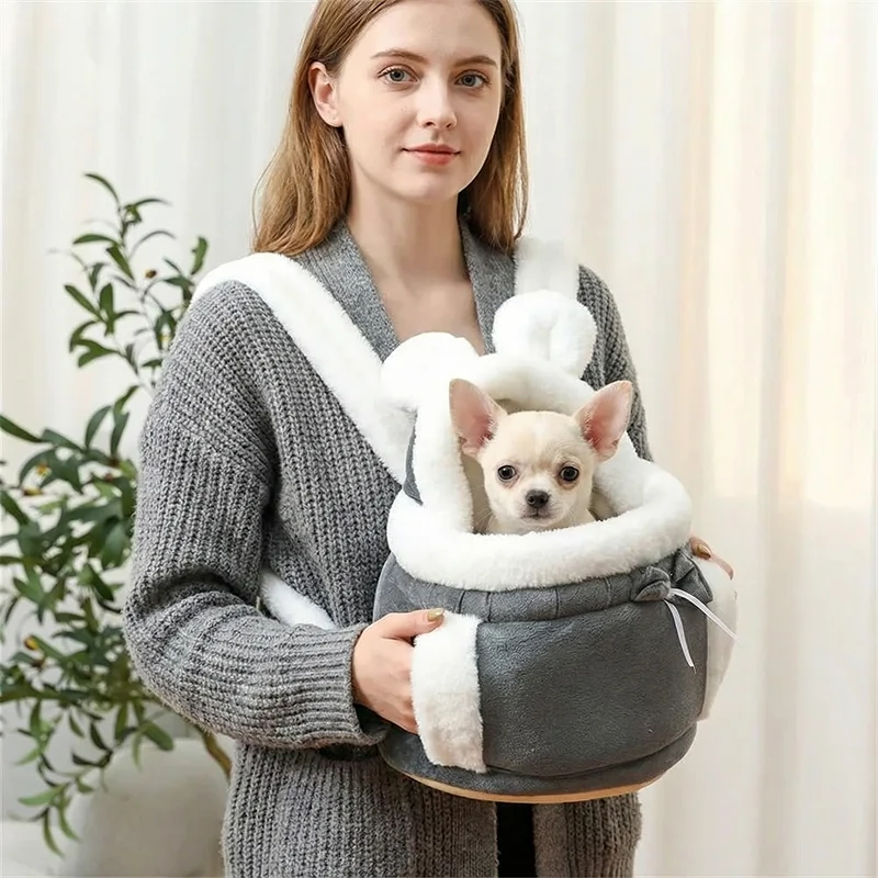 Habe diese kuschelige Tasche für meinen Hund gekauft. Sie rollt sich darin zusammen und macht ein Nickerchen, während ich Besorgungen mache – völlig entspannt und warm, sogar an windigen Tagen.
