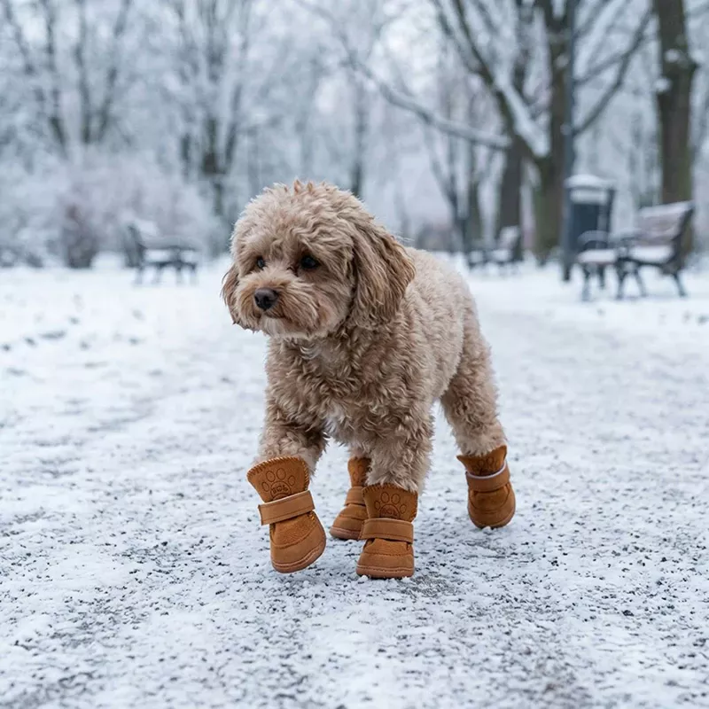 Regen und Schnee erschweren Ausflüge für Haustiere. Kalte Gehwege verursachen Unbehagen und schaden empfindlichen Pfotenballen. Primdog Schneeschuhe lösen diese Probleme, sodass das Spielen draußen sicher bleibt.