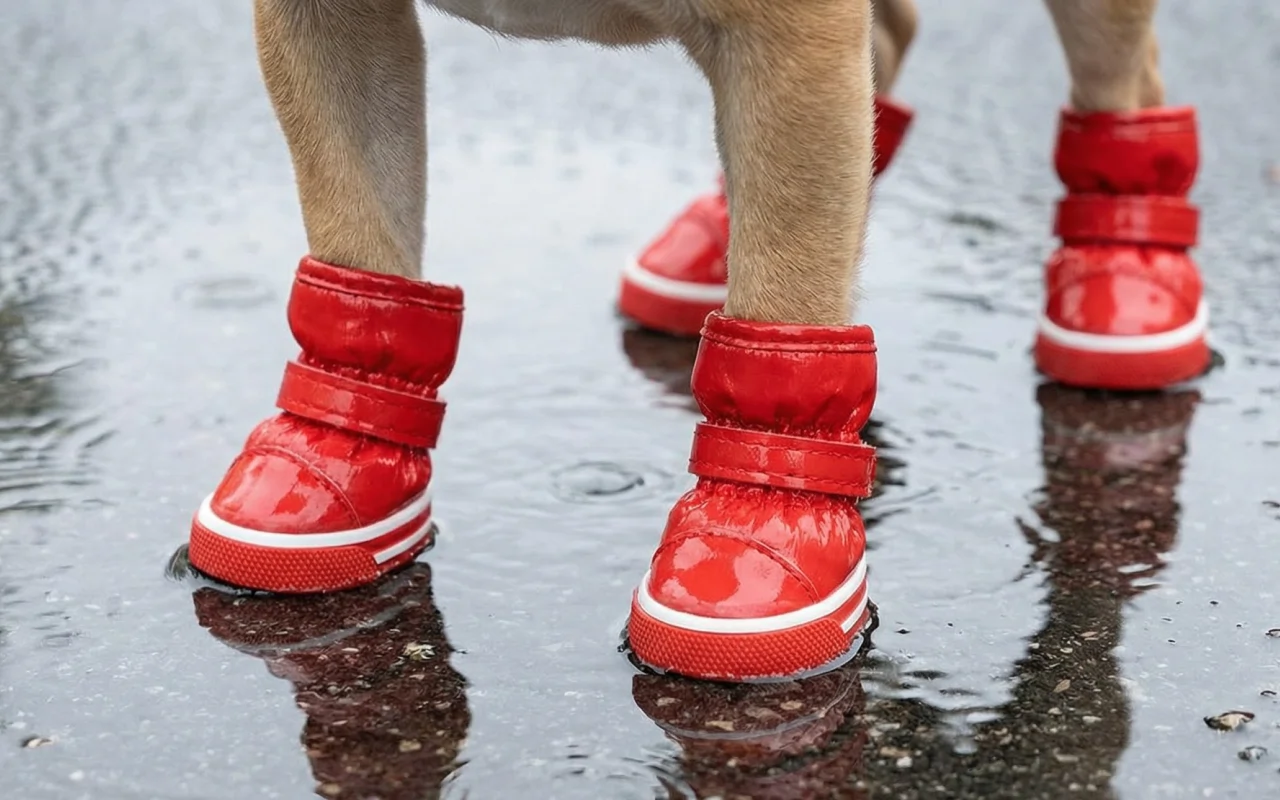 Spaziergänge machen auch im Regen oder Schnee Spaß. Primdog Schuhe halten Wasser ab und schützen die Pfoten auf matschigen Straßen.