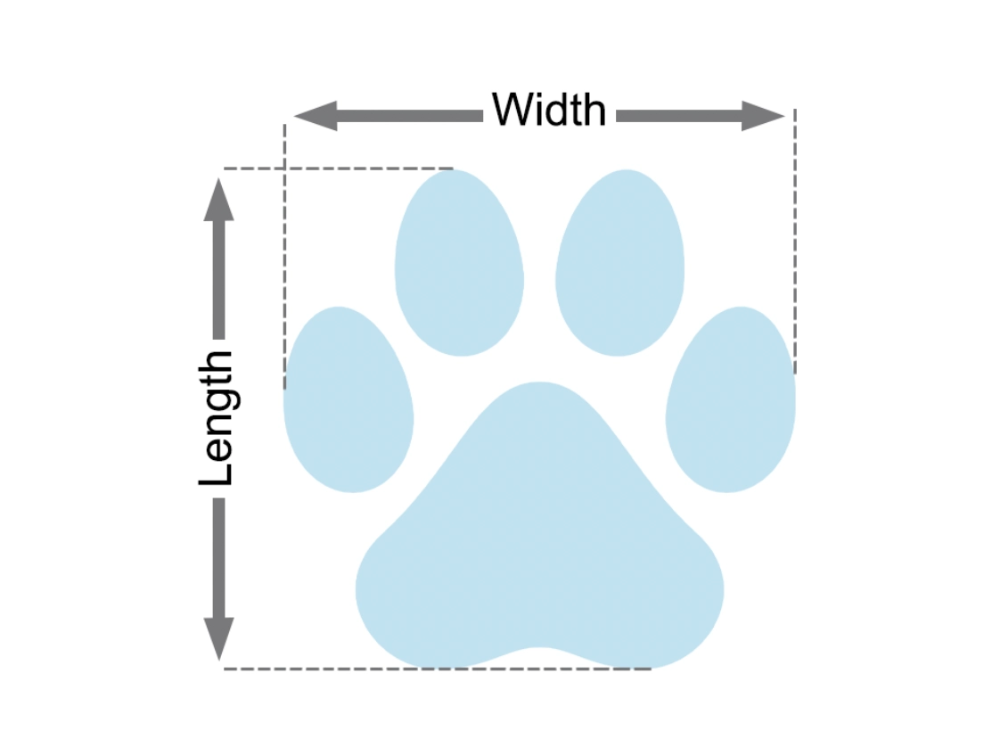 - 2. Markieren Sie die breitesten und längsten Stellen der Pfote und messen Sie anschließend diese Abstände mit einem Lineal.
