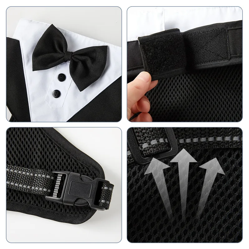 Verstellbares, anti-zieh Hundegeschirr im Smoking-Stil