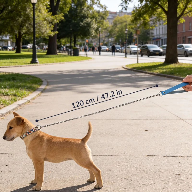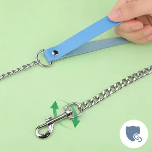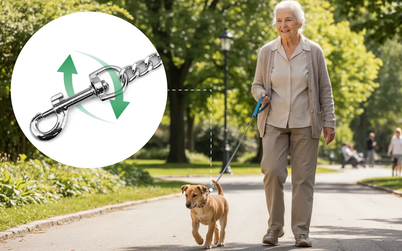Bewegen Sie sich frei, ohne Knoten oder verdrehte Leinen. Der clevere Haken dreht sich, sodass Ihre Haustiere sicher an Ihrer Seite bleiben.