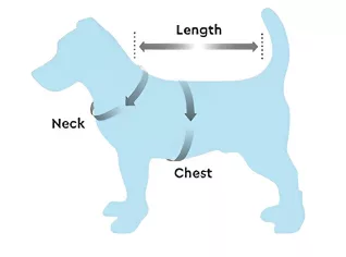 - 1. Messen Sie die Rückenlänge Ihres Haustiers vom Halsansatz bis zum Schwanz.