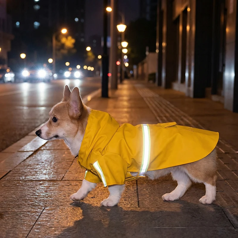 Heller reflektierender Hunde-Regenmantel mit Kapuze