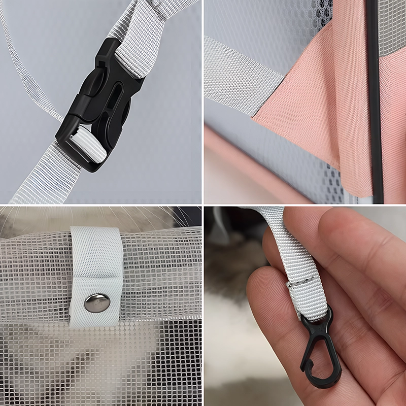 Frische Luft strömt durch Netzflächen an allen Seiten. Haustiere bleiben entspannt und kühl bei Spaziergängen oder Ausflügen nach draußen.