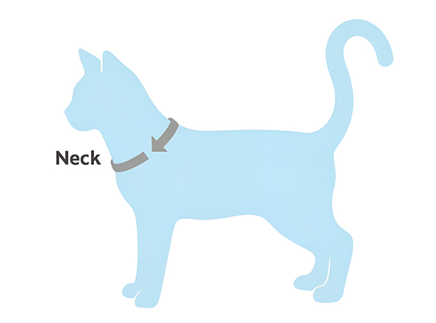 • 1. Legen Sie das Maßband an den Halsansatz, dort wo das Halsband sitzt, und messen Sie den Umfang.