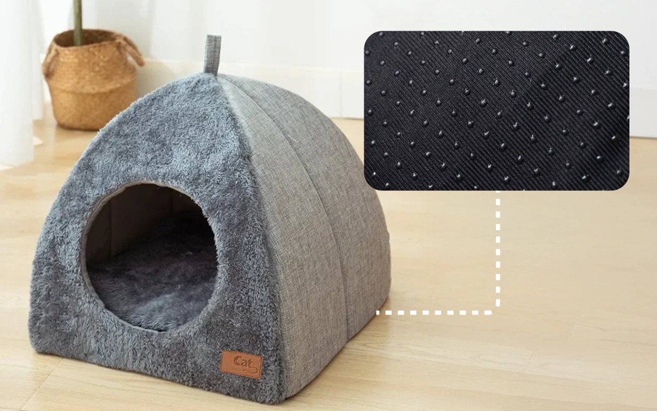 Unser Wohnzimmerboden ist rutschig, aber der Boden des Iglus sorgt dafür, dass es an seinem Platz bleibt. Es sieht super süß aus und meine Katze genießt ihren neuen privaten Rückzugsort.