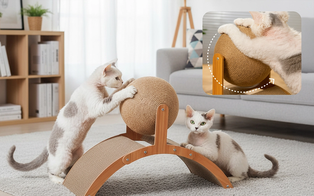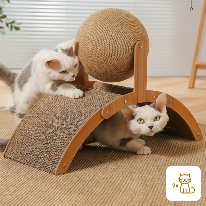Gewölbte Brücke und rotierender Ball sorgen für endlosen Spaß. Katzen erkunden, kratzen und entspannen bei jeder Benutzung.