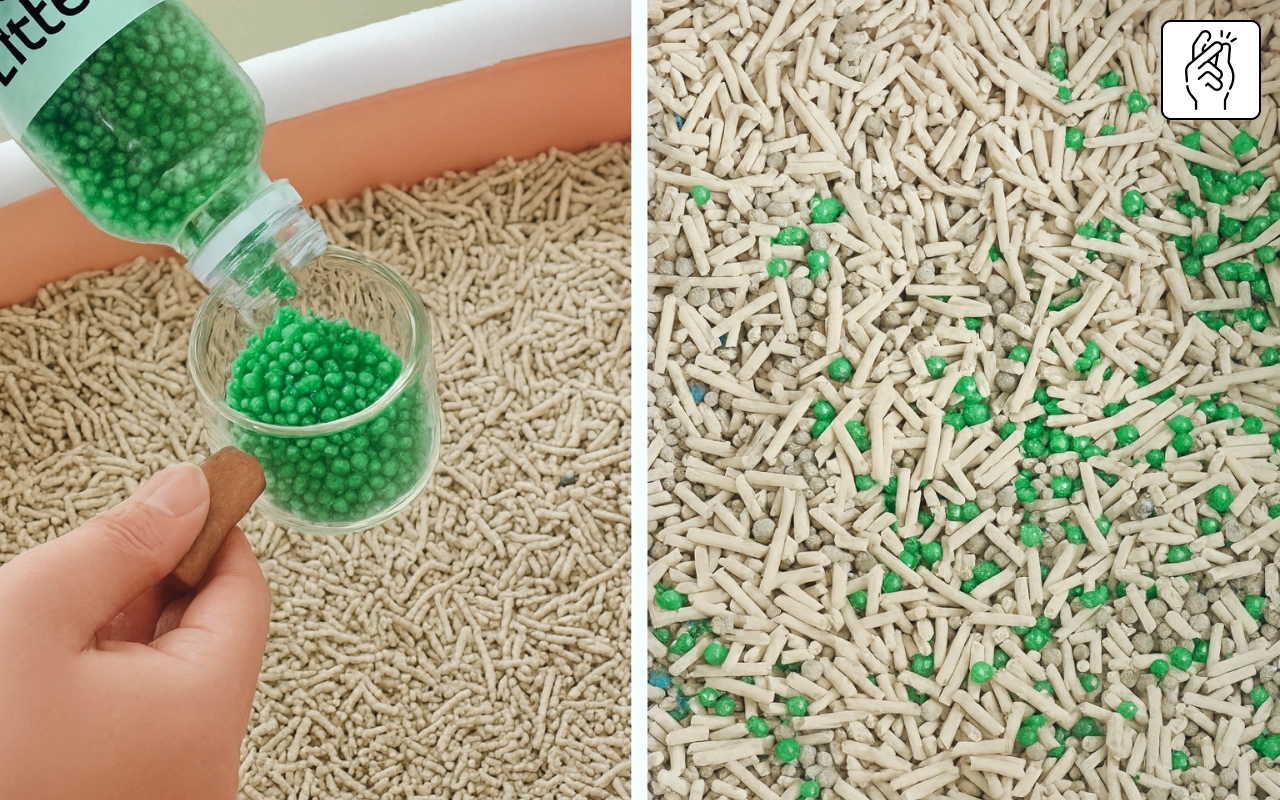 Einfach ein paar Perlen über die Streu streuen und schon bleibt es frisch. Für tolle Ergebnisse sind keine zusätzlichen Schritte oder Werkzeuge nötig.