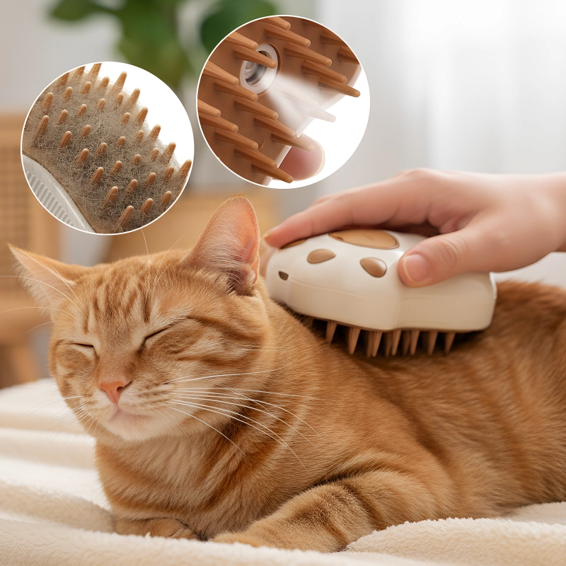 Katzen Massage-Dampfbürste Elektrischer Sprühkamm mit weichen Borsten