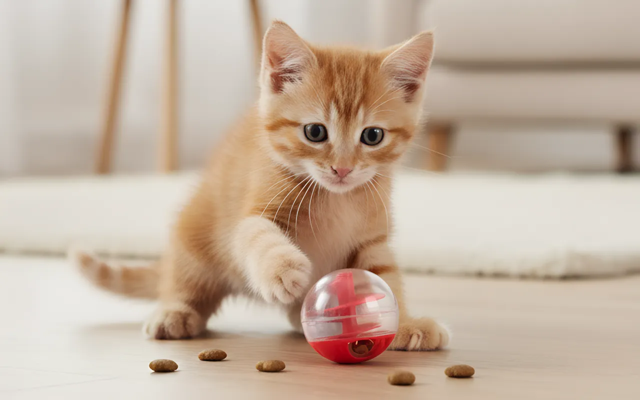 Unser Kätzchen hat früher die ganze Nacht miaut, aber jetzt rollt sie stundenlang ihren Snackball. Endlich bekommen wir Schlaf!