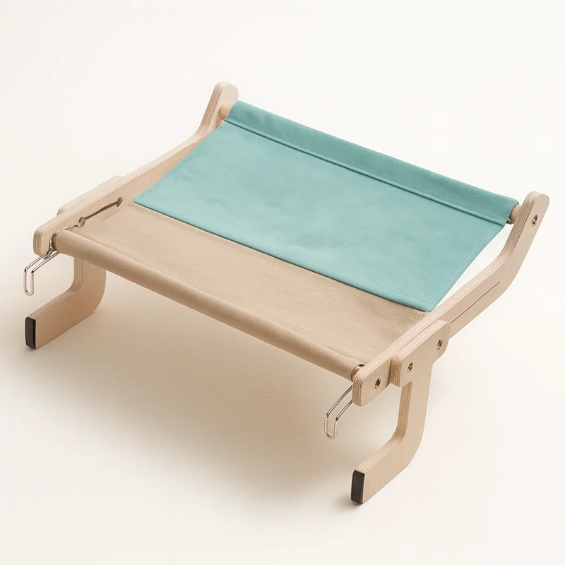 Der stabile Holzrahmen hält meine zwei Katzen sicher, selbst wenn sie gemeinsam darauf springen. Leicht zum Reinigen abzunehmen.