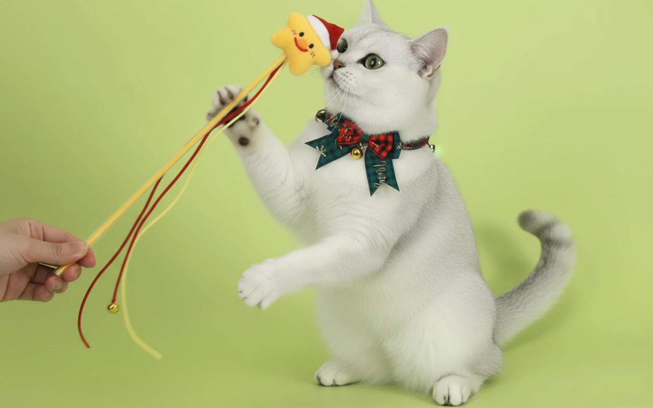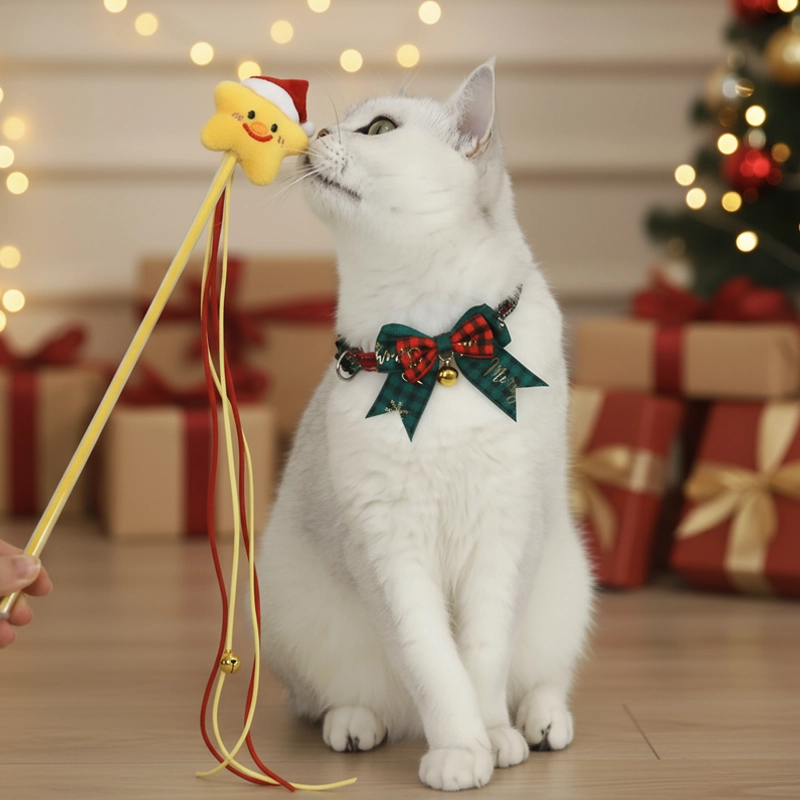 Meine Katze sieht dieses Weihnachten mit ihrer neuen Schleife besonders süß aus! Das Karomuster ist super lustig und das goldene Glöckchen klingelt, wenn sie herumläuft.