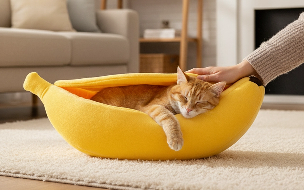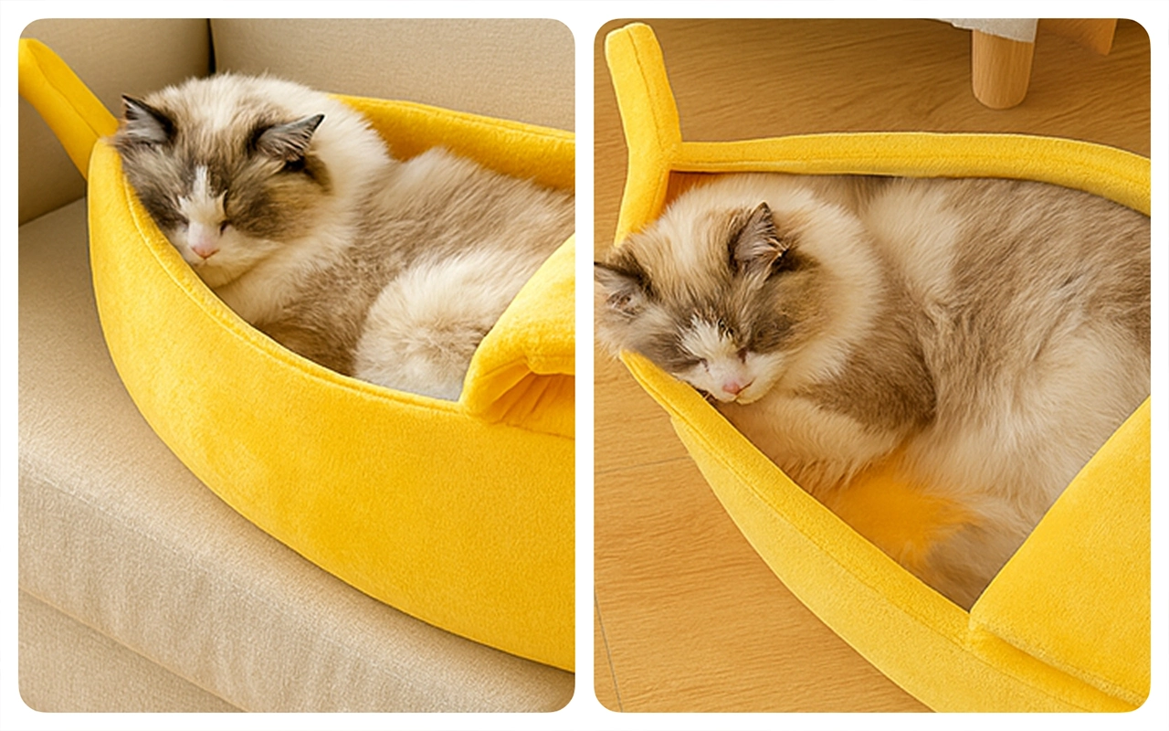 Niedliches Katzen-Bananenbett Gemütliches Tiernest