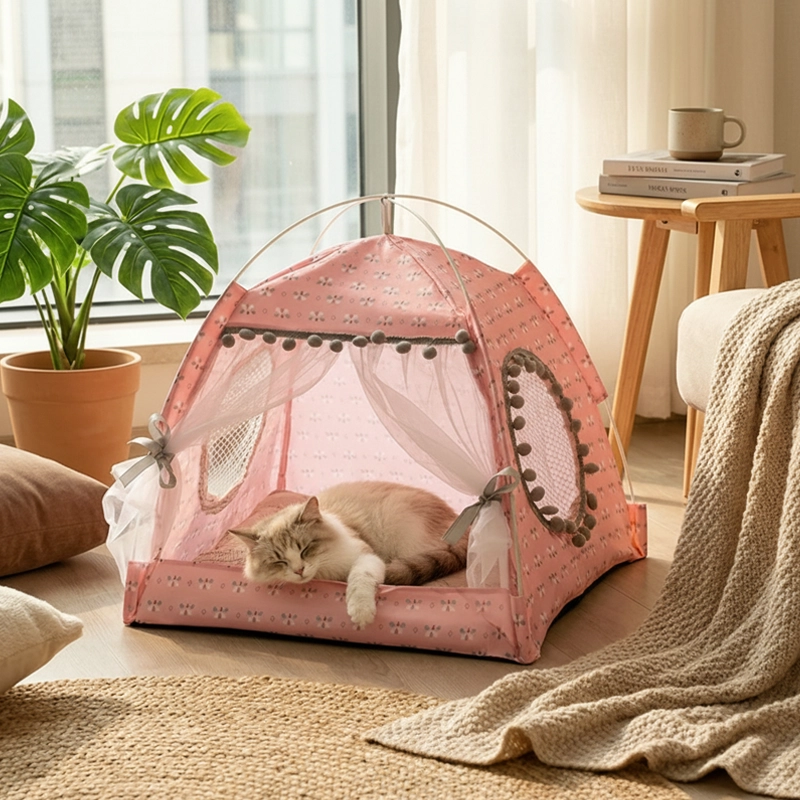 Geben Sie Ihrem Haustier einen kuscheligen Rückzugsort, der sich wie Zuhause anfühlt. Das Primdog Katzenzelt bietet Ihren pelzigen Freunden in jeder Jahreszeit Komfort. Luftige Mesh-Seiten lassen sanfte Brisen leicht hindurchströmen. Weicher Stoff und spielerisches Design hellen jeden Raum sofort auf.