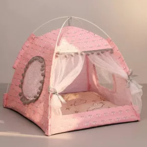 Niedliches Katzenzelt Haus Atmungsaktives Igloo-Bett für Haustiere mit Vorhängen