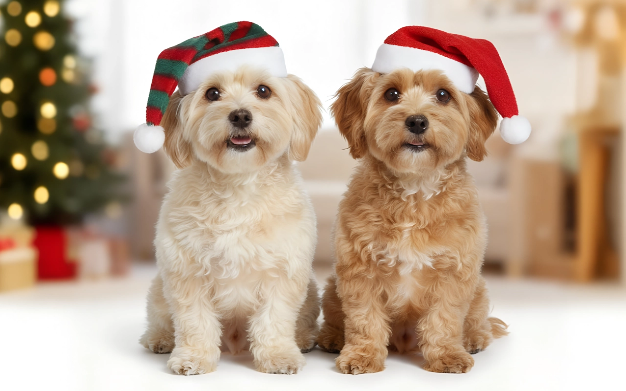 Niedlicher Weihnachts-Hundehut mit Band