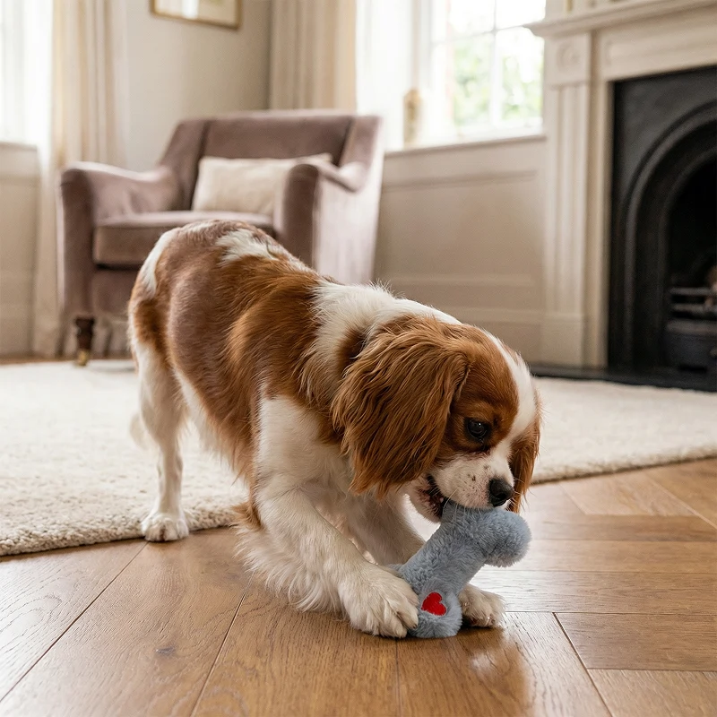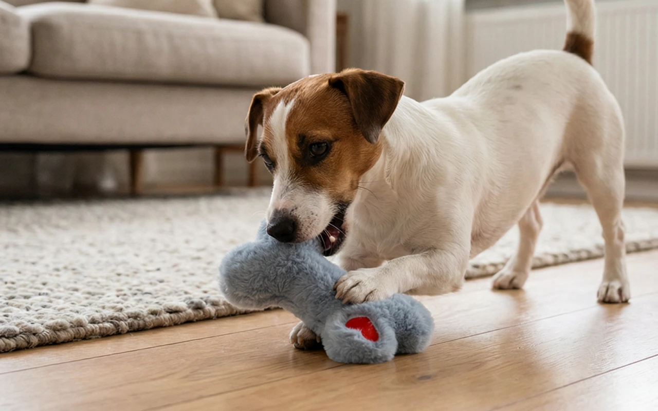 Ich freue mich, dass mein Hund auf etwas Sicherem kaut, während ich beschäftigt bin. Das Plüschmaterial fühlt sich angenehm an und der Quietscher beschäftigt ihn, ohne zu laut zu sein.