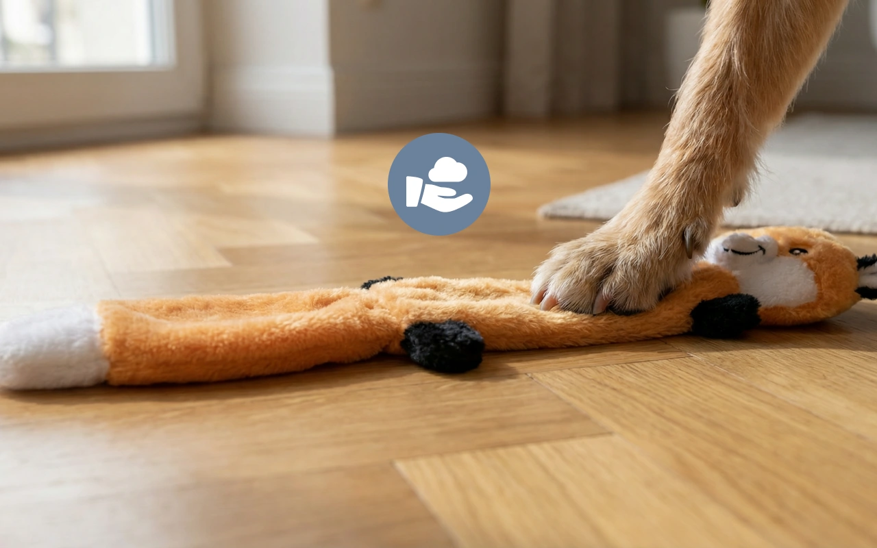 Fleece-Stoff fühlt sich angenehm im Maul und an den Pfoten an. Sicher für Indoor-Spiele, ohne empfindliche Oberflächen zu zerkratzen.