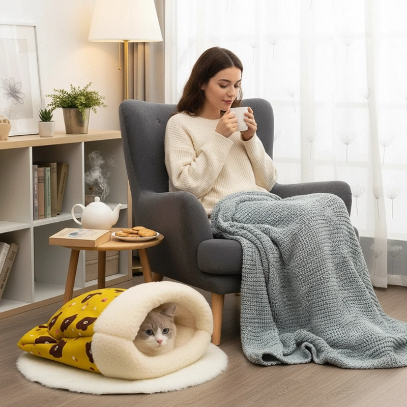 Die geschlossene Form hilft meiner Katze wirklich, sich sicher zu fühlen. Früher war ihr oft kalt, aber mit diesem Bett bleibt sie schön warm und schläft besser als je zuvor.