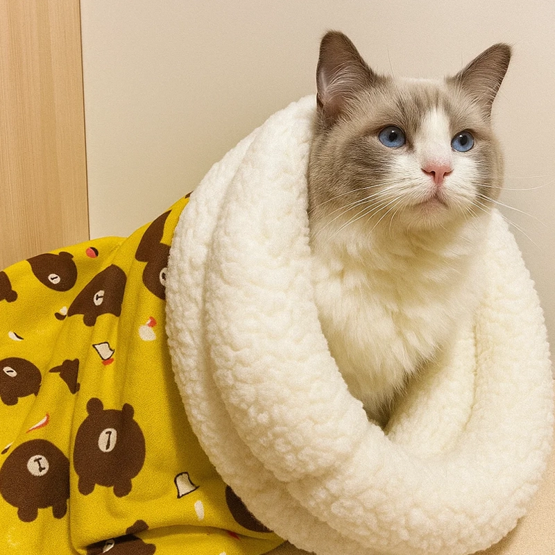 Süßer Plüsch-Schlafsack Geschlossenes Katzenbett