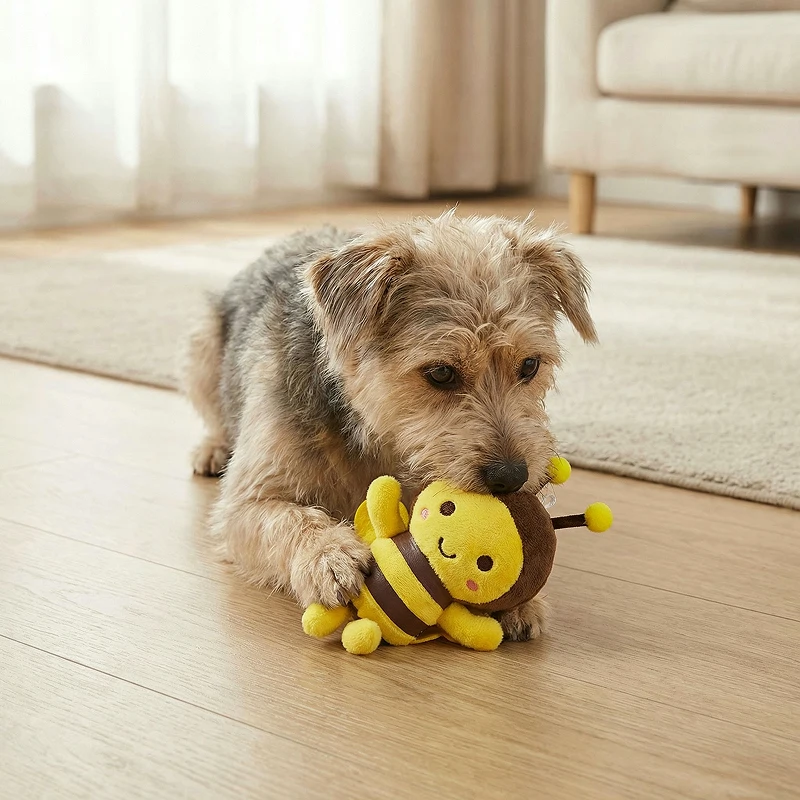 Mein Welpe kann nicht genug von ihrem Bienenspielzeug bekommen! Es ist super weich und hält viel Kauen stand. Perfekt für das Spielen im Haus an Regentagen.