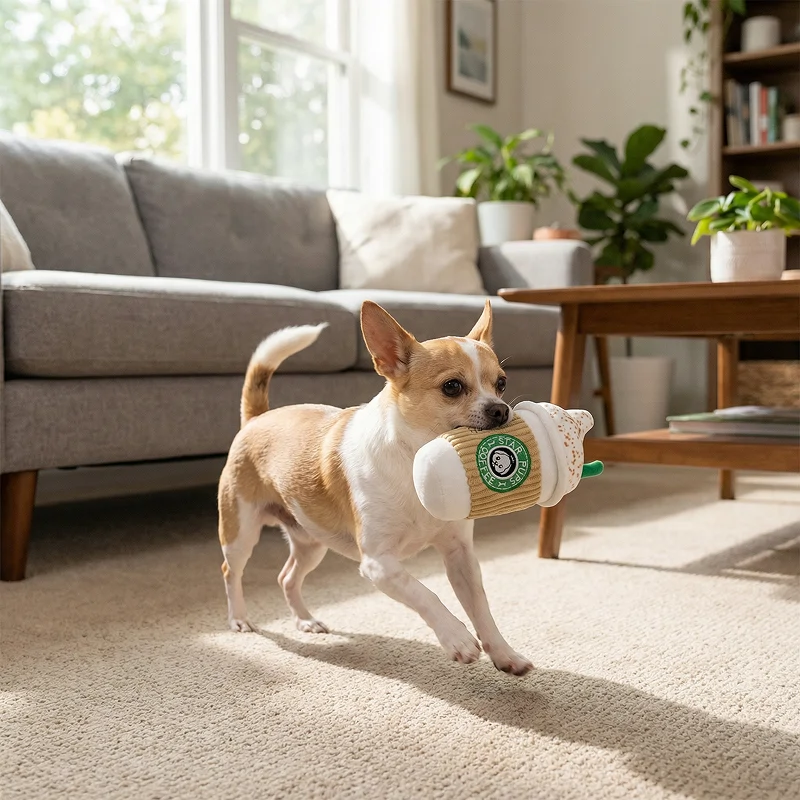Niedliches weiches Fleece Quietsch-Spielzeug Kaffeetasse für Hunde