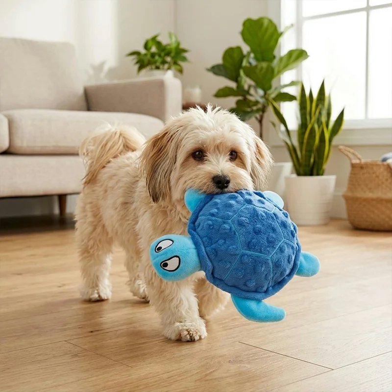 Niedriges weiches interaktives Quietsch-Schildkröten-Kauspielzeug für Hunde