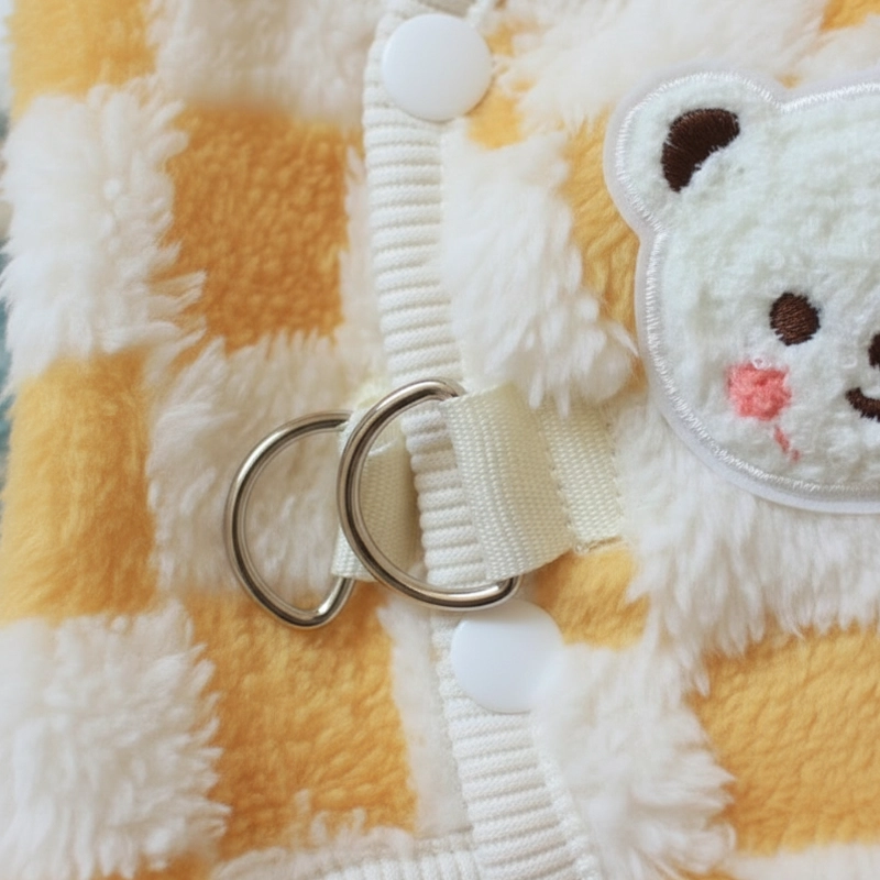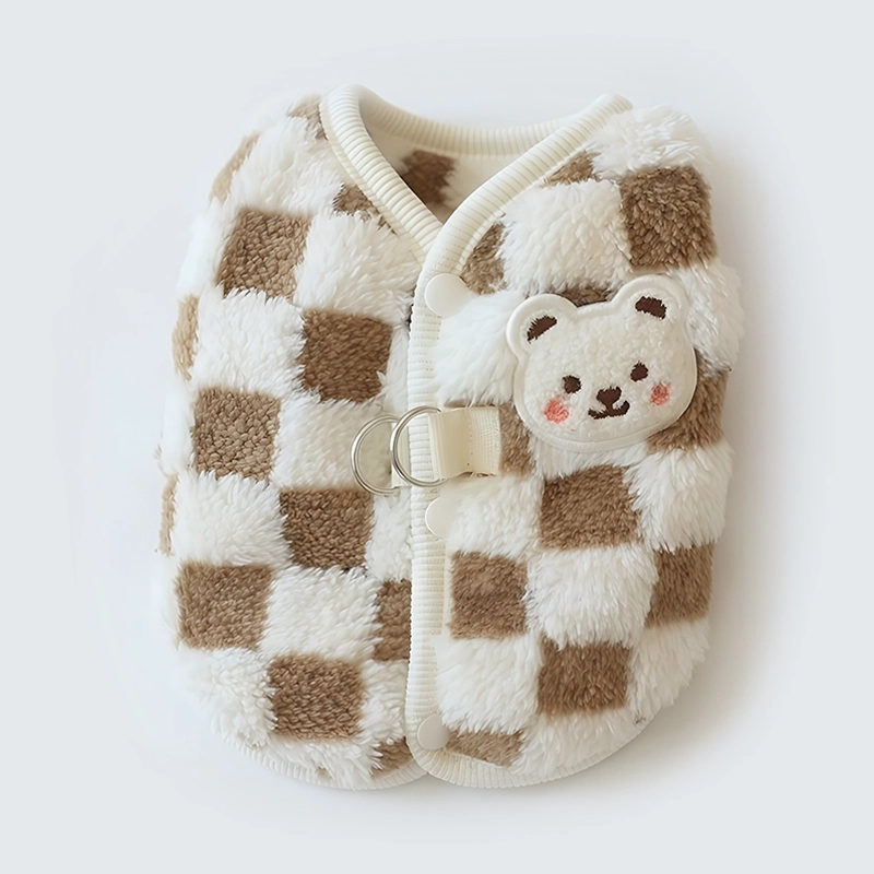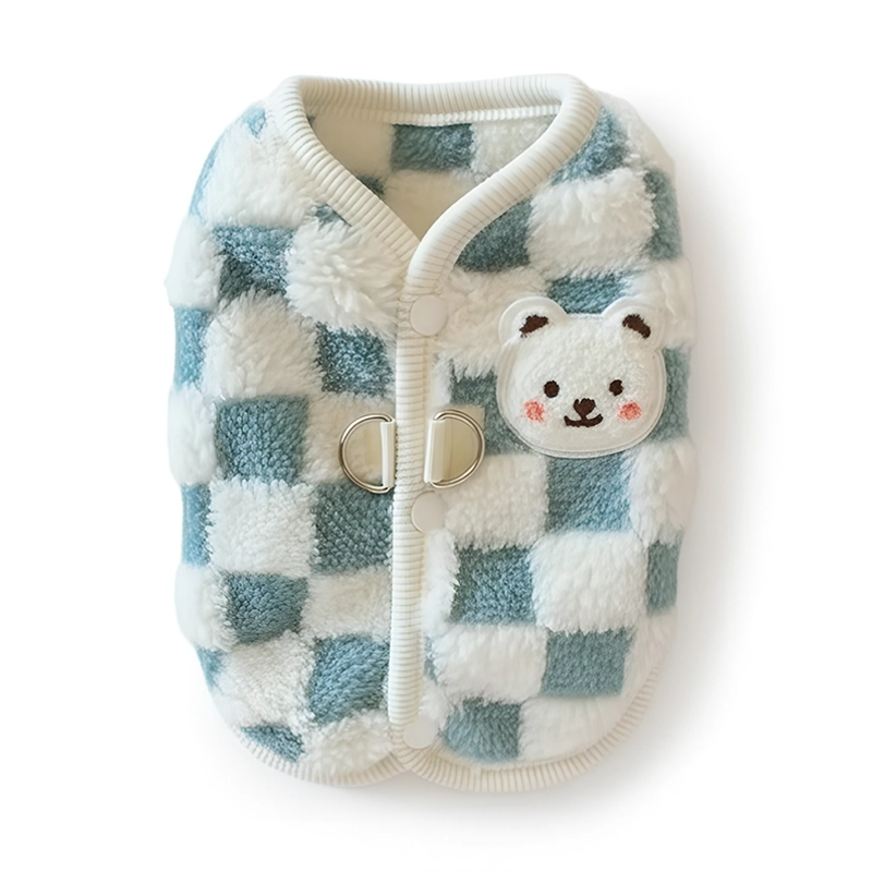 Die Bärenweste ist weich und hält meinen Terrier an frostigen Morgen warm. Sie fühlt sich wohl und die schnellen Knöpfe sind perfekt für zappelige Hunde.