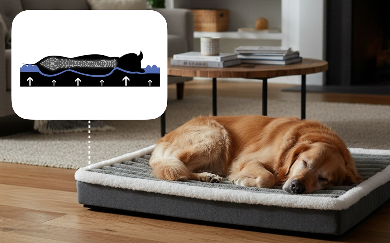 Eierschalen-Schaumstoff stützt Haustiere und lindert Beschwerden durch Druck. Haustiere bewegen sich leichter und sind nach dem Aufwachen weniger steif.