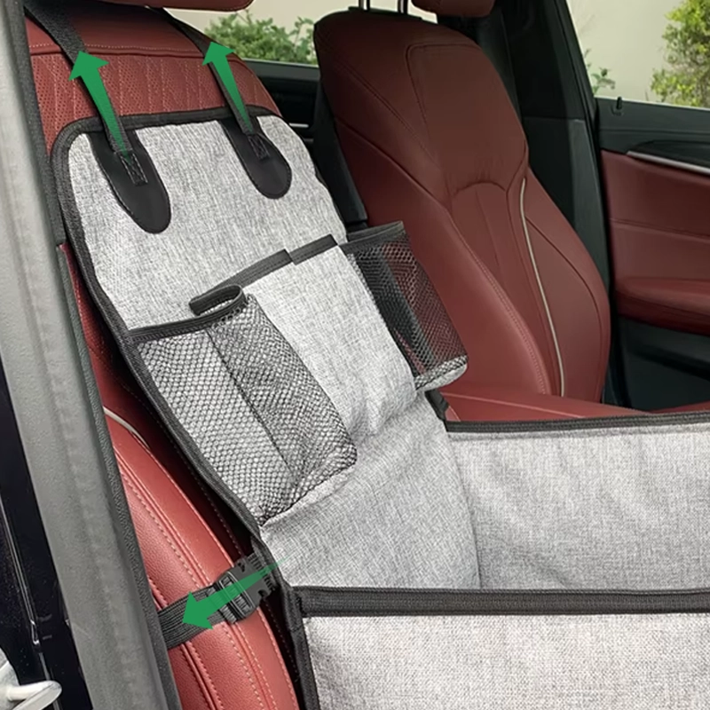 Ich habe meinen kleinen Hund auf einen Roadtrip mit diesem Sitzschoner mitgenommen und er hat sich sofort wohlgefühlt. Die Taschen sind super für Spielzeug und Leckerlis.
