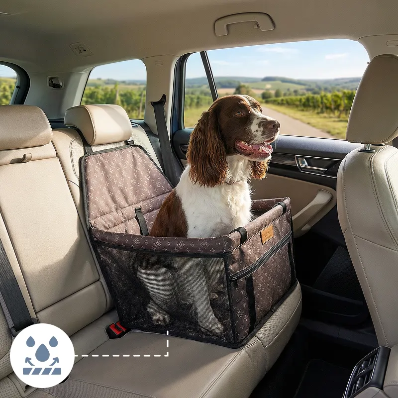 Ihr Freund bleibt während jeder Fahrt sicher an seinem Platz. Gurte und stabile Seiten helfen, plötzliche Bewegungen oder riskantes Springen zu verhindern.