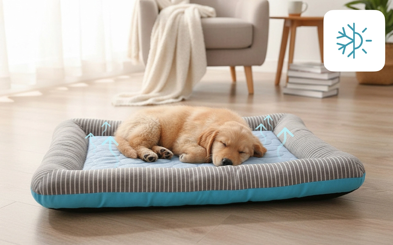 Hitze verschwindet von dem Lieblingsplatz Ihres Haustiers. Spezielle Materialien fördern die Luftzirkulation und helfen, den Körper erfrischt und glücklich zu halten.
