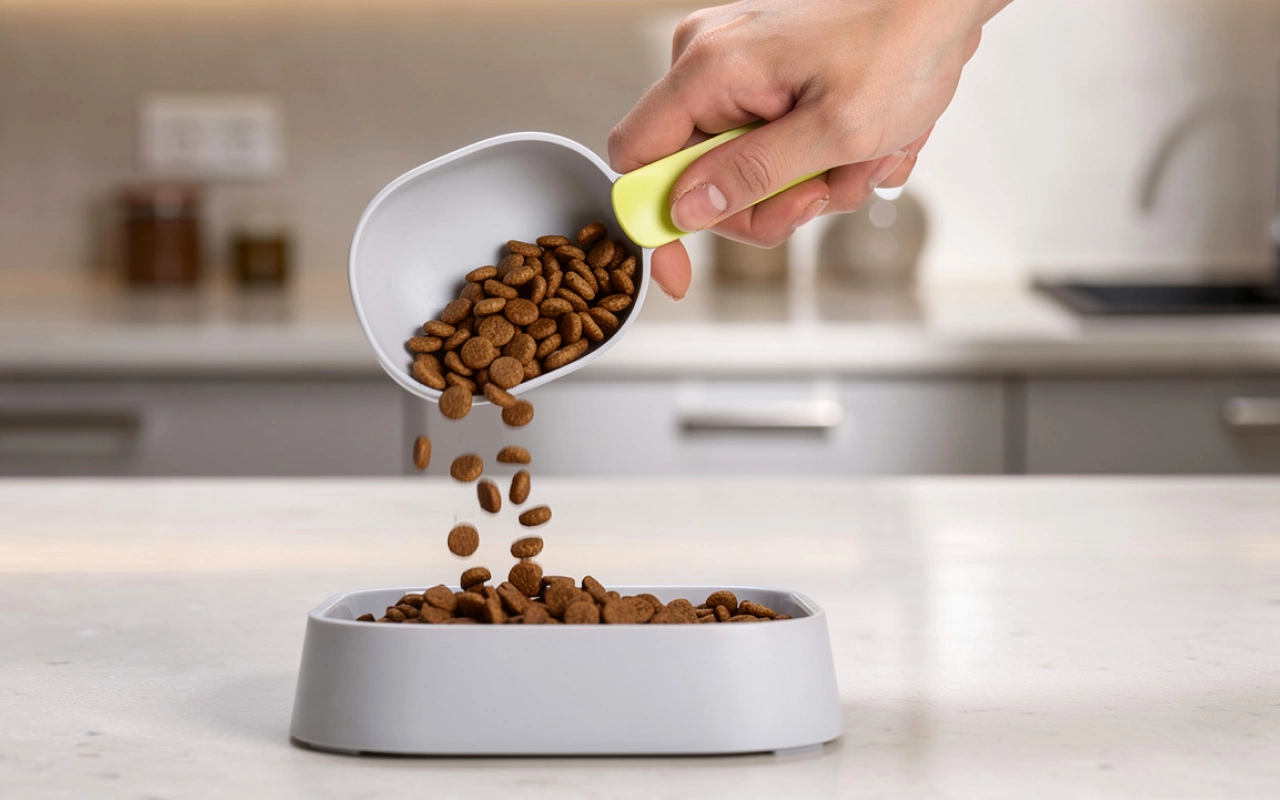 Damit geht das Füttern meines Hundes richtig schnell. Das Abmessen ist einfach und der Clip hält die Luft draußen, sodass das Trockenfutter immer knackig bleibt.
