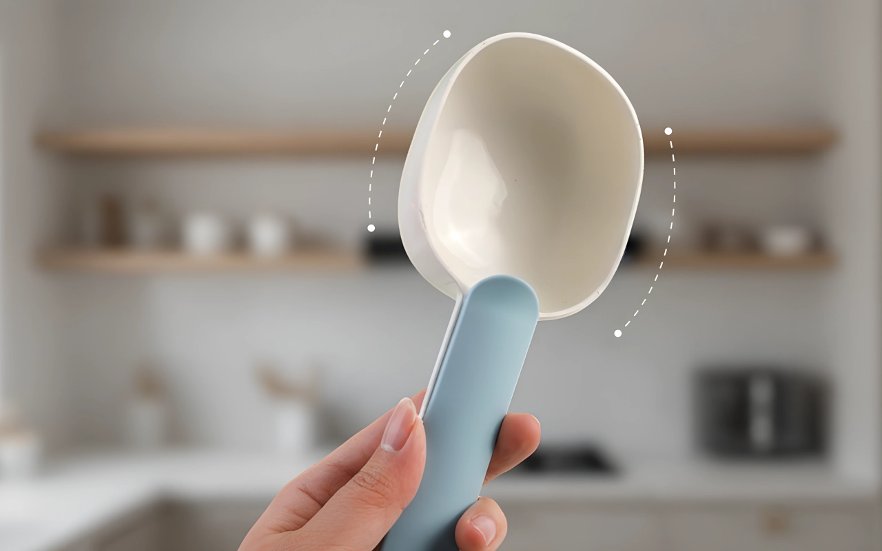 Genießen Sie sauberes Füttern, indem Sie jedes Mal die Hände sauber halten. Die gebogene Form erleichtert das Schöpfen und verhindert Verschütten.