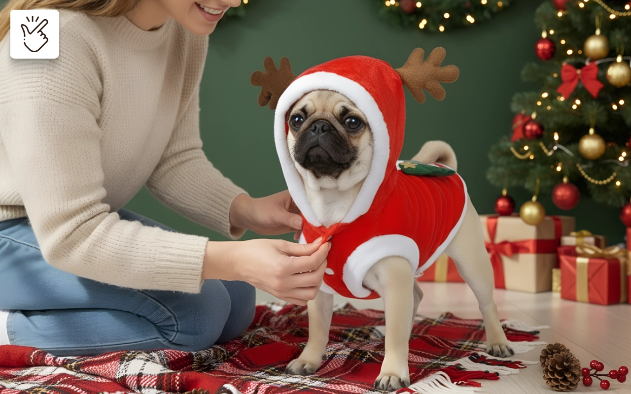 Habe diesen gemütlichen Rentier-Anzug für unseren Golden geholt. Einfach anzuziehen, sitzt perfekt und hält auch nach mehrmaligem Tragen gut. Festliche Morgen sind jetzt noch niedlicher!