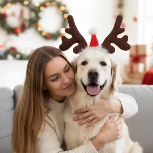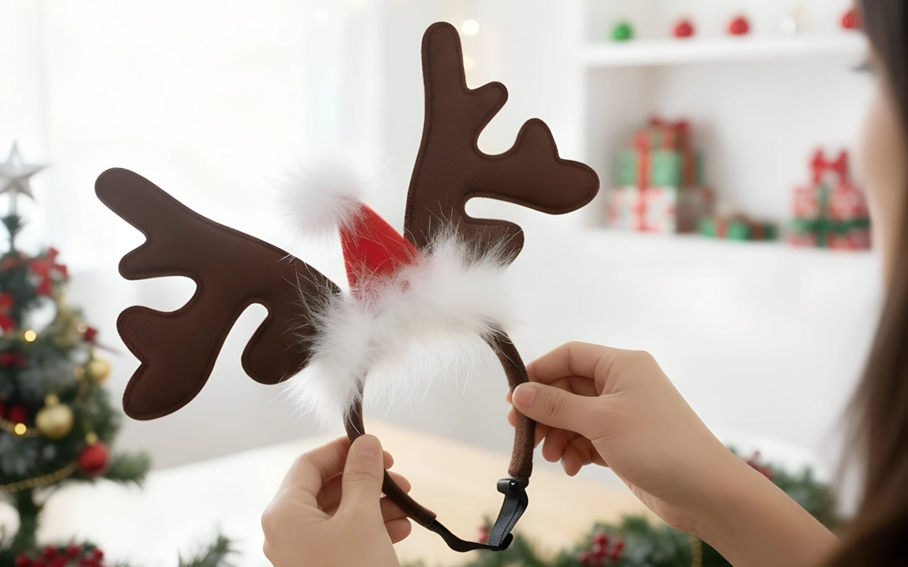Niedliche Geweihe und eine flauschige Mütze machen jedes Haustierfoto zum Highlight. Ihr Hund bezaubert alle bei Versammlungen und Familienfotos.