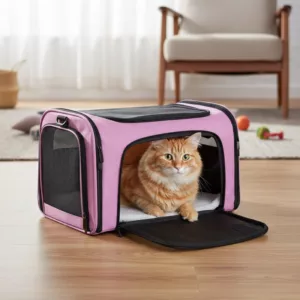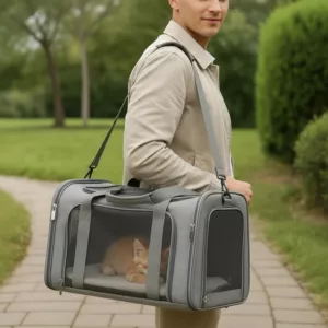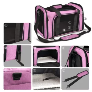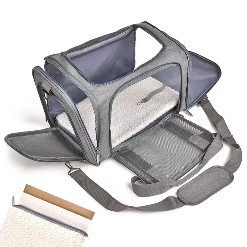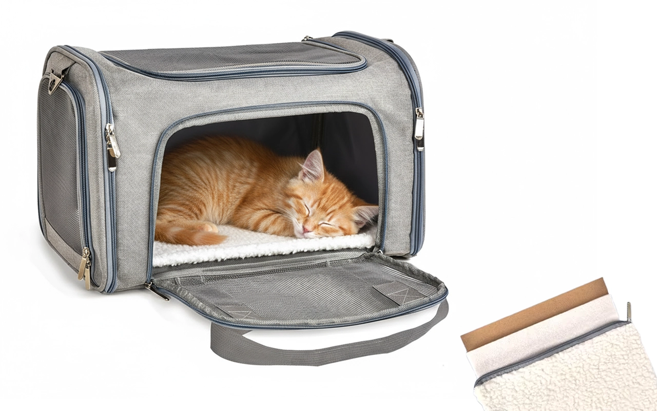 Ein herausnehmbares Fleece-Polster schafft ein weiches Bett für ruhige Nickerchen. Die Mesh-Einsätze lassen frische Luft herein und helfen Haustieren, sich während der Reise zu entspannen.