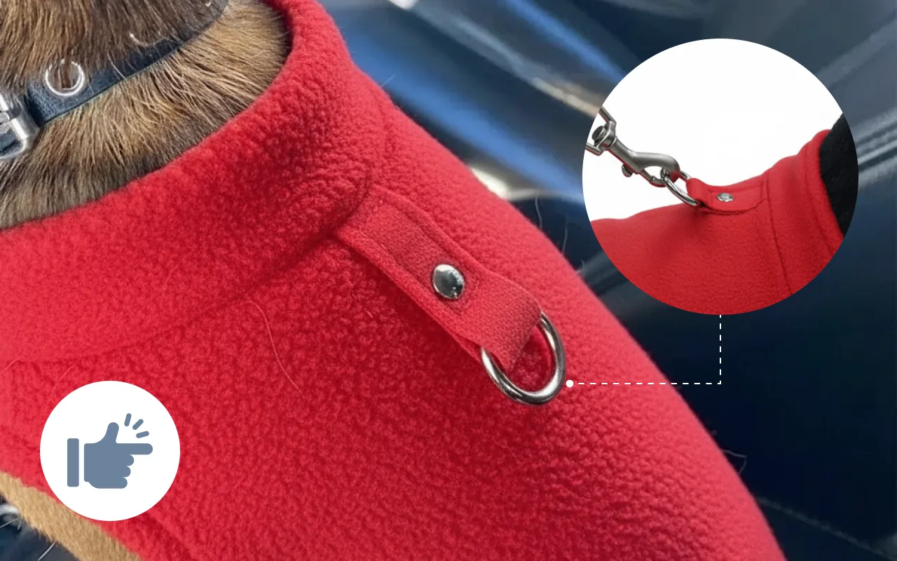 Weiches Fleece speichert die Wärme, damit Haustiere draußen gemütlich bleiben. Ihr Freund vermeidet das Zittern auf kalten Straßen oder in frostigen Parks.