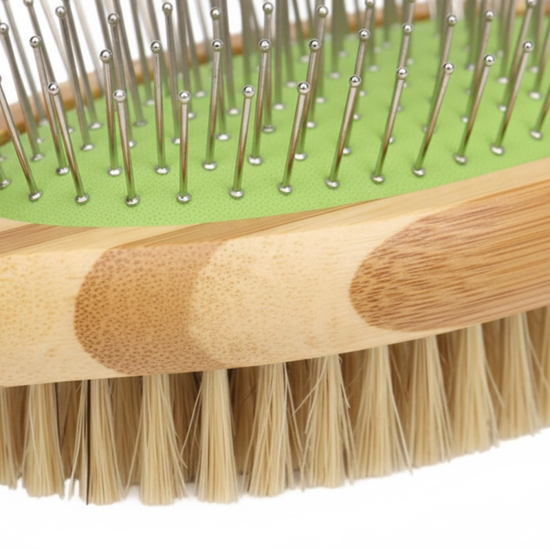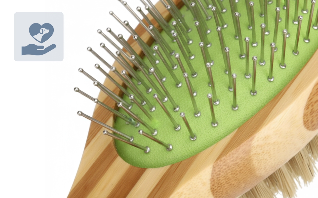 Wechseln Sie mühelos zwischen Borsten- und Stiftseite für eine rundum Pflege. Jede Seite löst Verfilzungen oder glättet das Fell für ein poliertes Ergebnis.