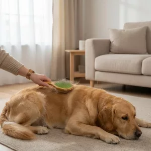 Diese Bürste macht das tägliche Pflegen so einfach. Mein Hund sitzt geduldig und wedelt sogar mit dem Schwanz, während ich sie benutze. Die Borstenseite hinterlässt sein Fell super glatt.