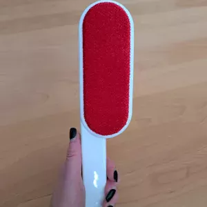 Funktioniert gut, aber der rote Stoff an der Bürste lässt den Schmutz leicht erkennen. Dennoch ist sie ein Muss für Haustierbesitzer.