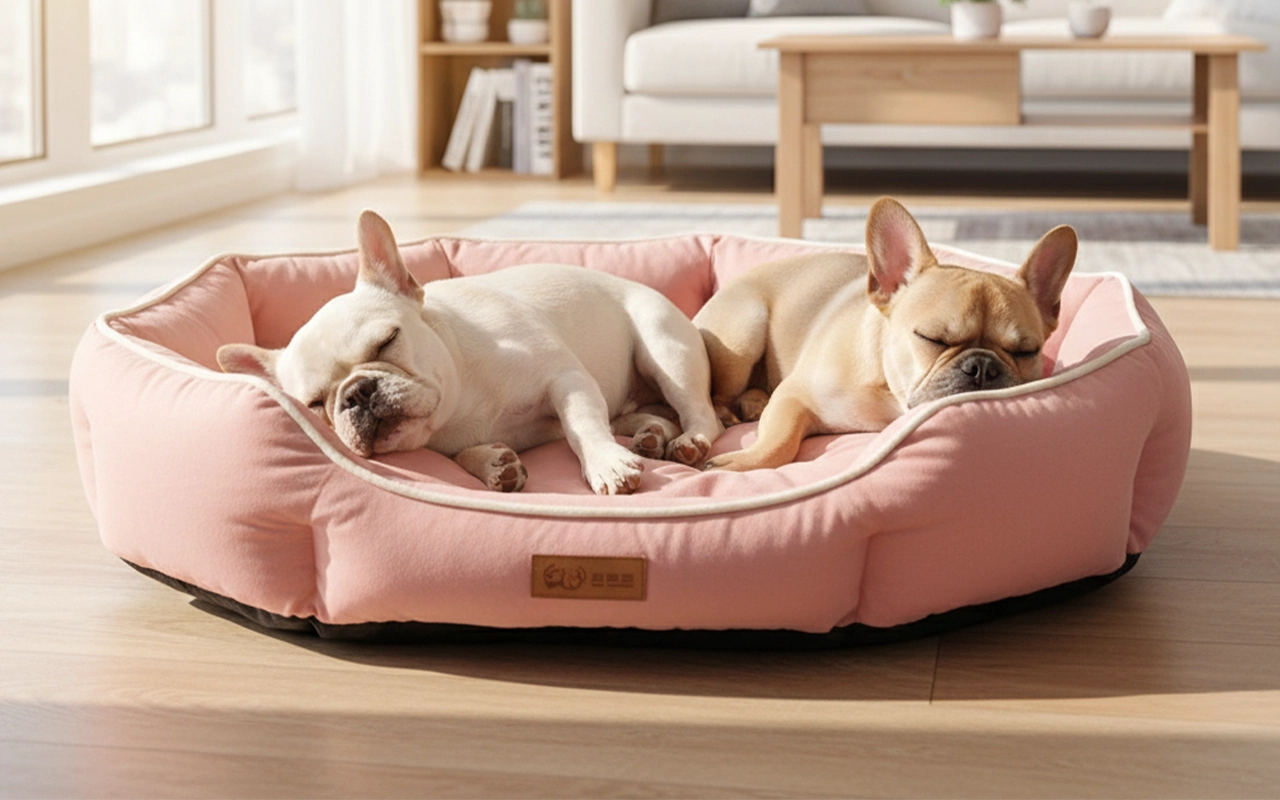 Wir finden es toll, dass zwei kleine Hunde diesen Platz teilen können. Sie kuscheln sich zusammen und der Bezug lässt sich leicht zum Waschen abnehmen.