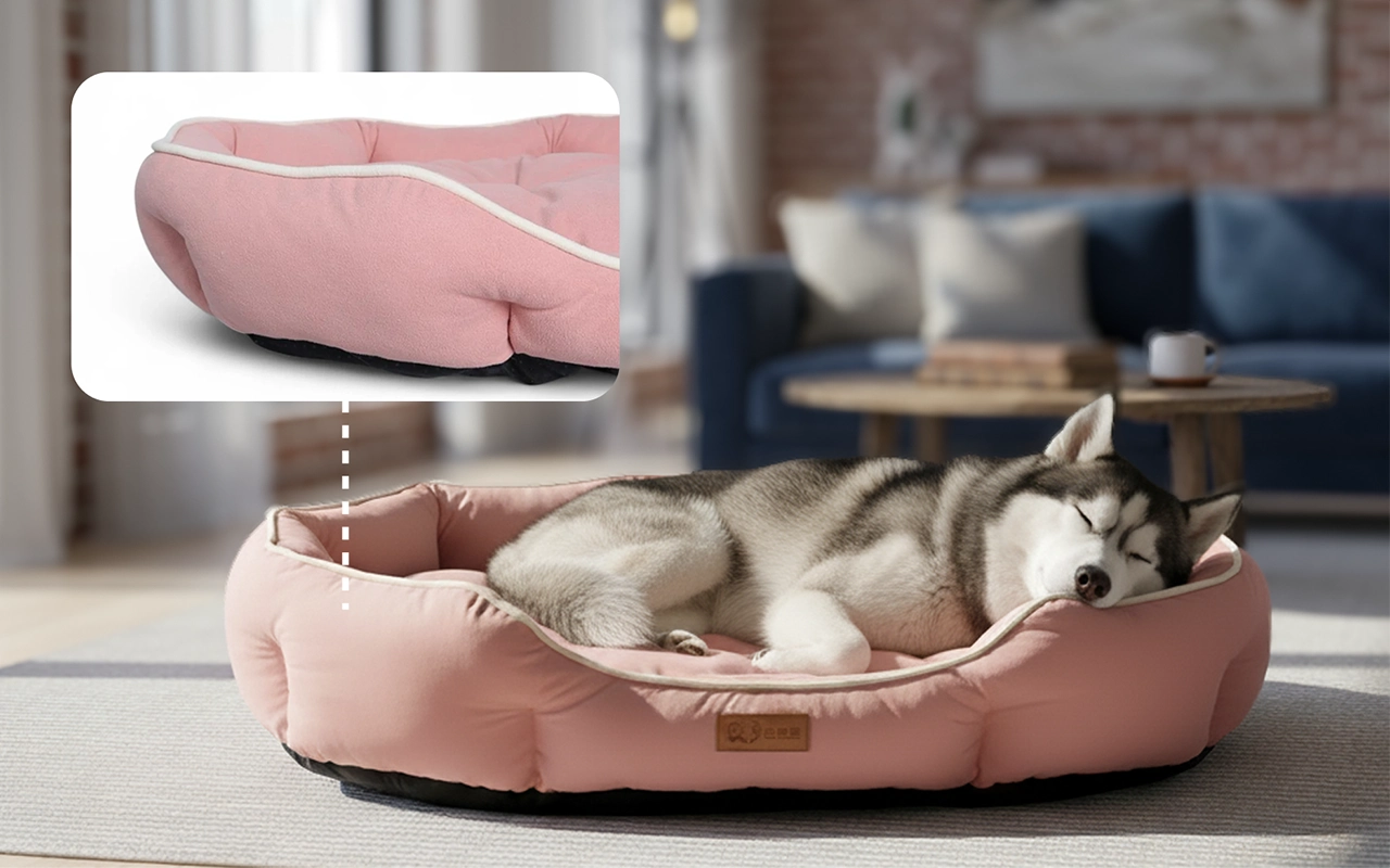 Erhöhte Ränder bieten Schutz vor Zugluft und Lärm. Hunde kuscheln sich hinein und fühlen sich vor Stress oder Sorgen geschützt.