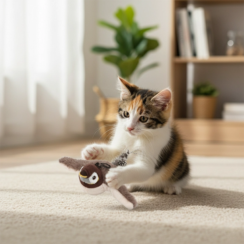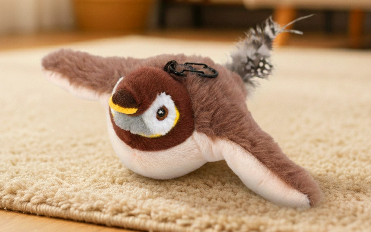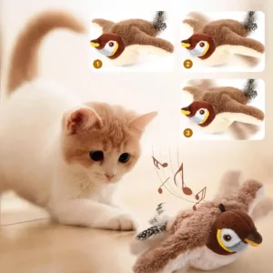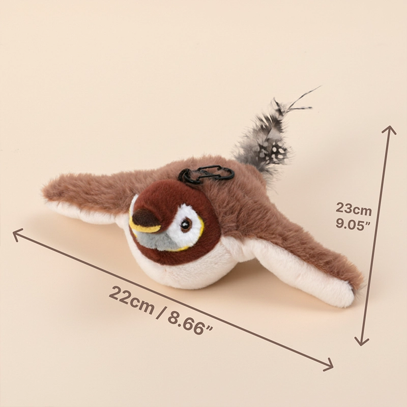 Realistische Melodien und flatternde Flügel wecken schnell die natürliche Neugier. Katzen bleiben drinnen stundenlang aufmerksam, konzentriert und fröhlich.